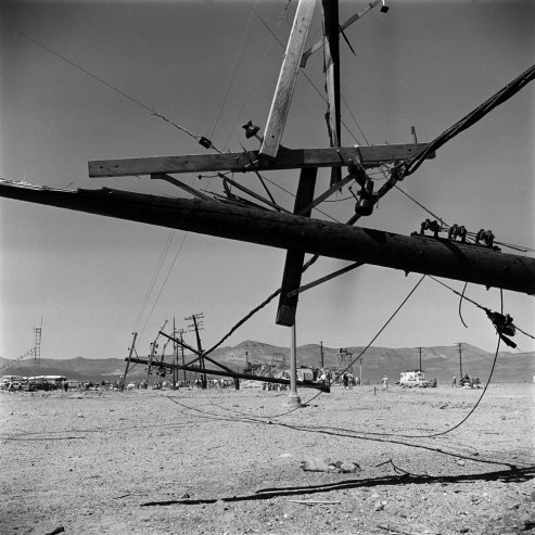 Today LIFE posted a number of pictures depicting the aftermath of a 1955 nuclear test in the Nevada desert. Some of these pictures were originally published in the magazine, but the majority of them were not. As the brief commentary accompanying the revisiting of these images puts it: “And yet today, six decades later, at a time when the prospect of nuclear tests by ‘rogue states’ like North Korea and Iran is once again making headlines and driving international negotiations and debate, the very banality of one long-forgotten atomic test in 1955 feels somehow more chilling than other more memorable or era-defining episodes from the Cold War. After all, whether conducted in the name of deterrence, defense or pure scientific research, the May 1955 blast. . . was in a very real sense routine.” A couple samples: